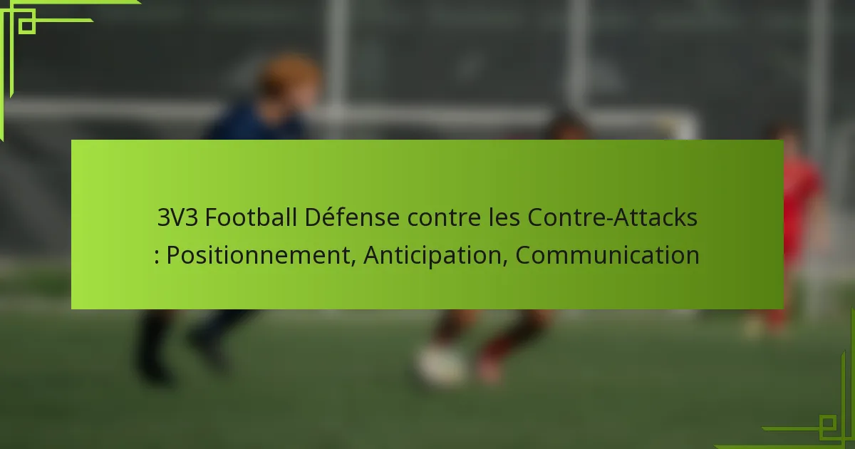 Se défendre contre les contre-attaques au football 3v3 nécessite une approche stratégique qui met l’accent sur un positionnement efficace, l’anticipation et la communication. En maintenant une conscience de l’aire de jeu et en reconnaissant les schémas des adversaires, les défenseurs peuvent perturber les attaques avant qu’elles ne prennent de l’ampleur. De plus, une communication claire entre coéquipiers améliore la coordination, permettant des réactions rapides face aux menaces potentielles.