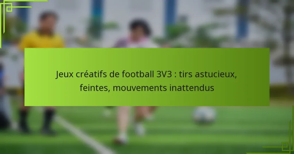 Dans le soccer 3V3, la créativité est essentielle pour surpasser les adversaires et maximiser les occasions de marquer. En intégrant